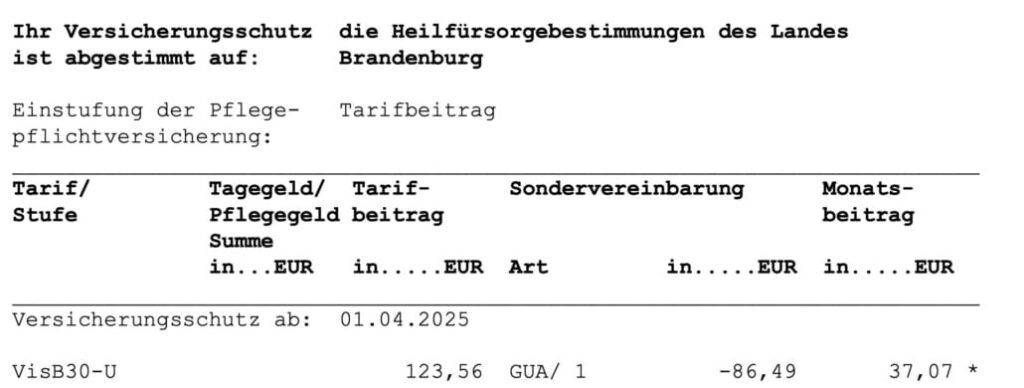 (Update: 2025 – Beispiel DBV Tarif DBV VisB-30)